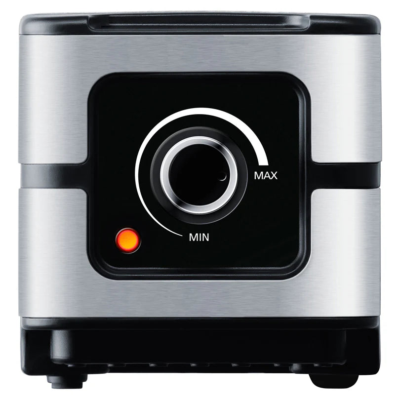 La raclette è dotata inoltre di: regolazione continua della temperatura, spia di controllo temperatura, piedini antiscivolo per un arresto sicuro, cavo di collegamento di 1,5 m e 4 padellini antiaderenti privi di PFAS. Dati tecnici: 230 V~ - 50 Hz - 600 Watt - 1,5 kg