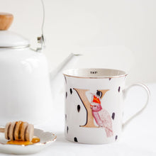 Ogni lettera dell'alfabeto è rappresentata sulla propria tazza con un uccello o un animale esotico splendidamente dipinto in un'iniziale personalizzata, tra cui un grazioso barboncino e un furbo camaleonte.