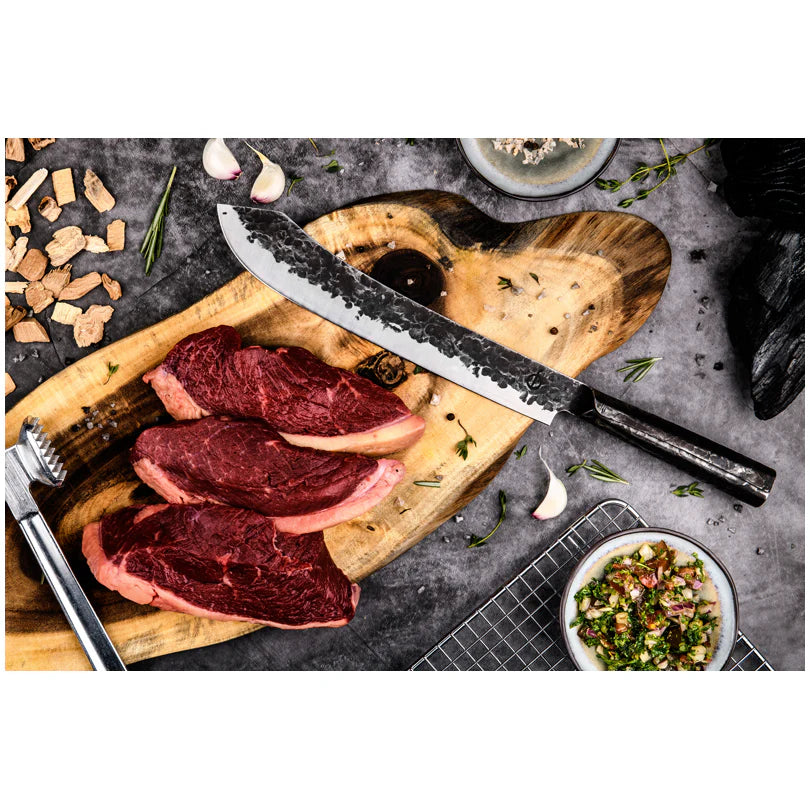 Grazie alla lama extra lunga del coltello da macellaio Brute, è possibile preparare e porzionare facilmente pezzi di carne di grandi dimensioni. Facilita il taglio di fette di carne perfettamente dritte in una sola passata.