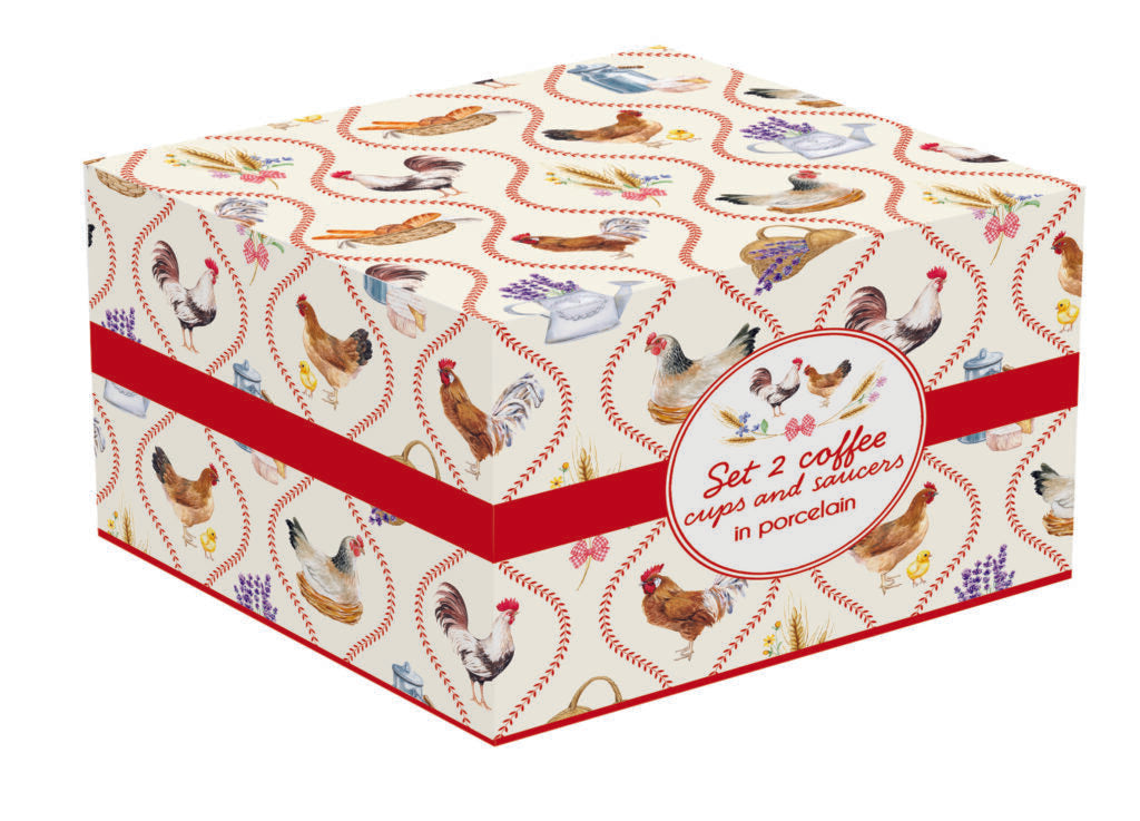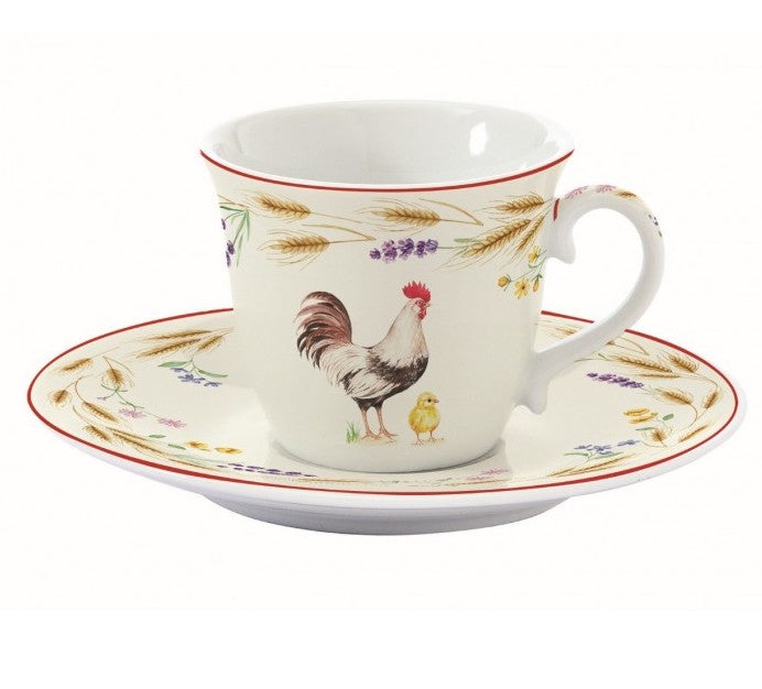 Porta un tocco rustico e giocoso alla tua tavola con questo set da caffè in porcellana della linea "Country Life" di Easy Life. Ispirata alla vita di campagna, questa linea richiama il grano estivo, le galline e i pulcini, il pane e il latte. Aggiungi un'atmosfera accogliente alle tue cene con amici e familiari.