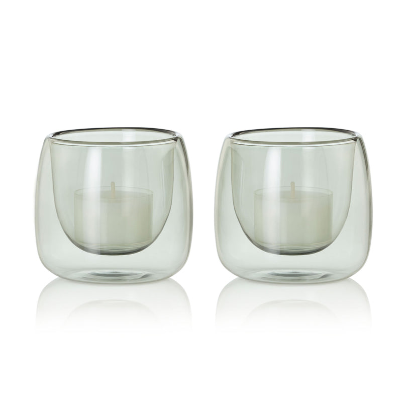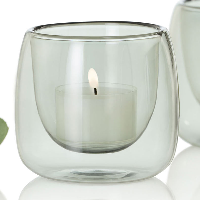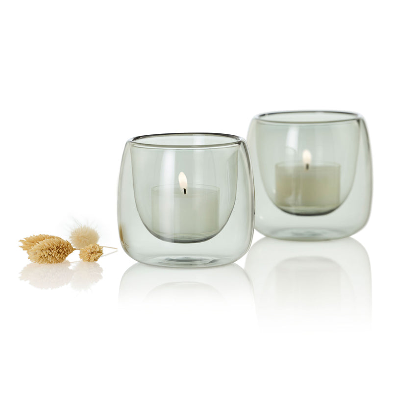 Set 2 portacandele in vetro fumè Yuna