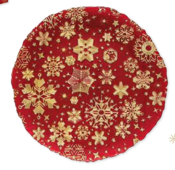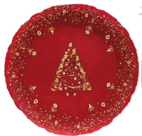 Piatto centrotavola in vetro rosso che trasforma la tavola in un'opera d'arte! Con i suoi eleganti decori, questo pezzo cattura la luce creando un'atmosfera magica per cene speciali e momenti indimenticabili. Perfetto per aggiungere un tocco di sofisticatezza al tuo tavolo, combina bellezza e funzionalità in un unico accessorio affascinante. Ideale come pezzo decorativo o per servire con stile. CON SCATOLA REGALO
