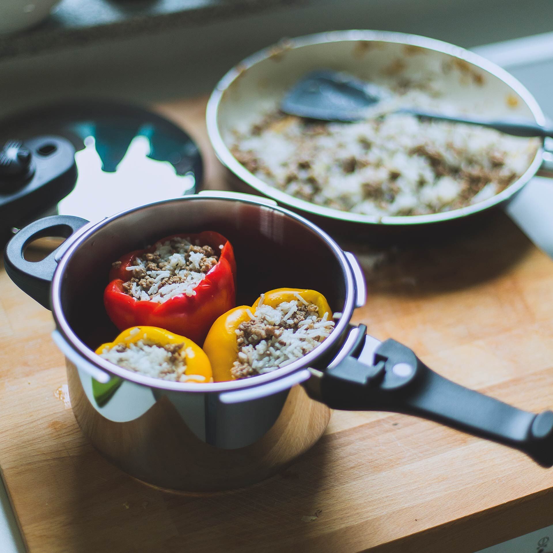 È realizzata in acciaio inossidabile e dispone di un sistema di controllo automatico della pressione con due livelli di cottura. Grazie al suo design intelligente, la pentola a pressione non solo fa risparmiare tempo, ma riduce anche enormemente il consumo di energia, riducendo i tempi di cottura da un quarto a un terzo rispetto al tempo normale.